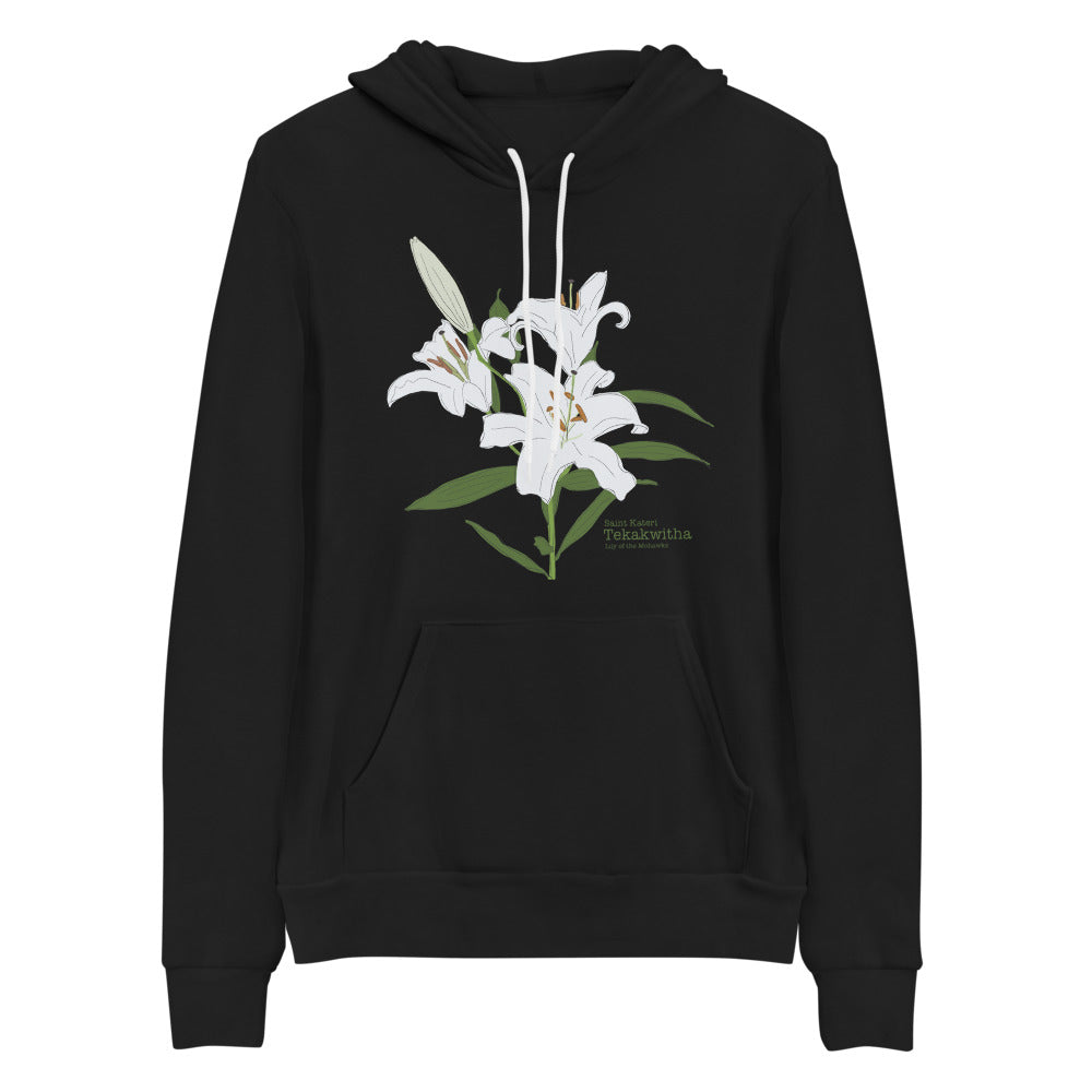 Our Lily of the Mohawks hoodie is made as a remembrance of her and her life's legacy. Let Kateri remind you everyday to love everyone you come across, and to love and respect all of God’s creations.